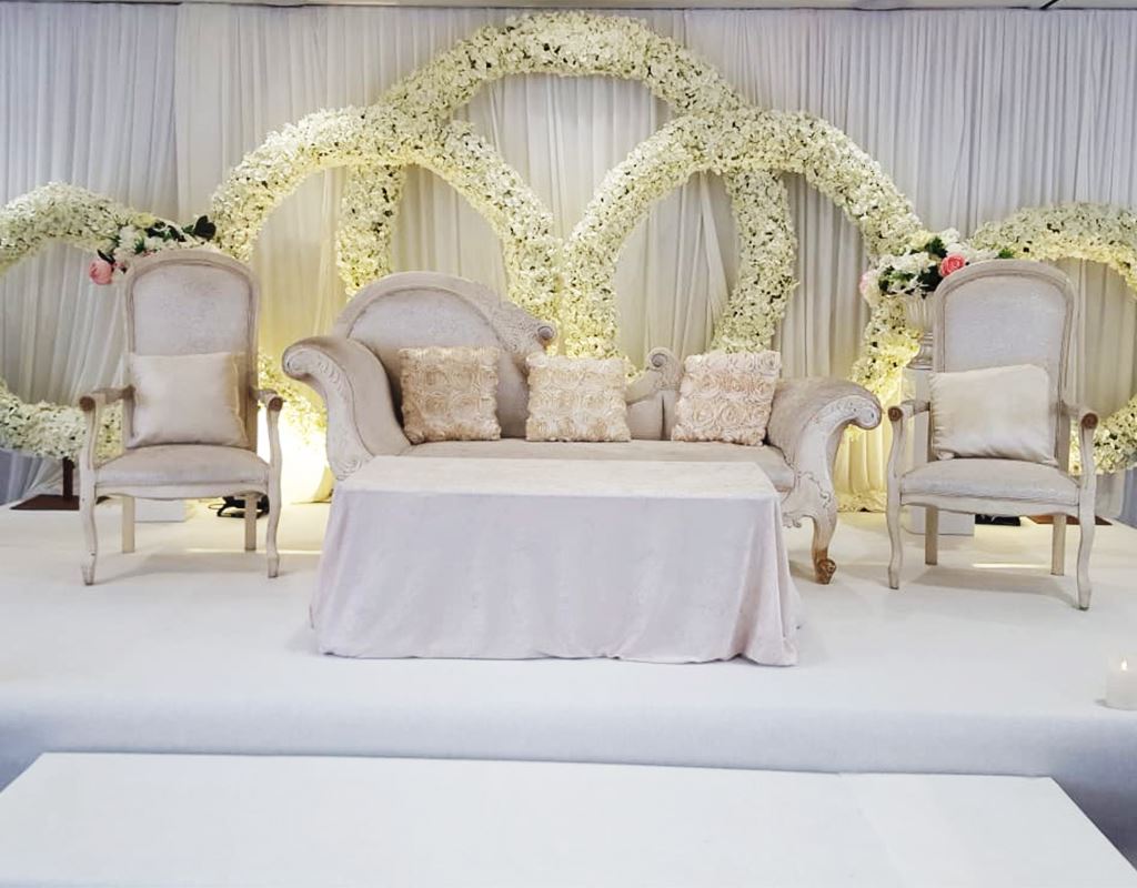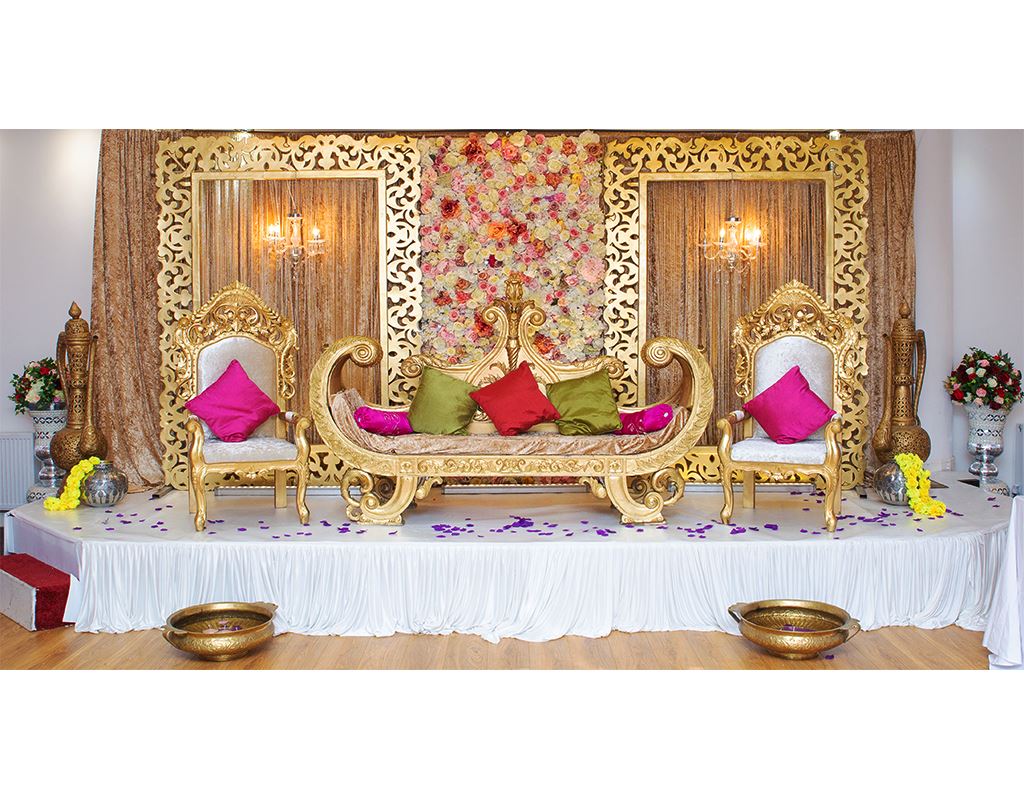 which is why here at Bombay Events we offer a large range of colour schemes and styles to suit your needs. We also offer various choice of sofa seating, ornaments, florals and more to really bring the stage to life.