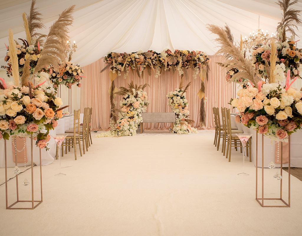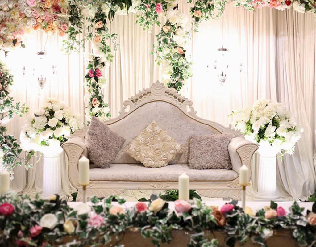 The Nikkah is the first part of the Islamic wedding where the marriage contract is signed between the couple. The stage set-up plays a big part at this event,